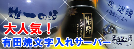 大人気の有田焼♪その中でも特に文字入れで人気の高い焼酎サーバーをしかもお値段リーズナブル☆