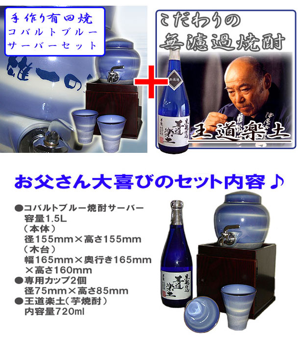 有田焼 コバルトブルー焼酎サーバーセット 1.5L(焼酎カップ2個・木台付)