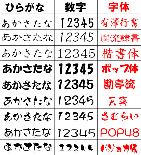 字体(フォント)の指定を希望される場合は、具体的な文字の字体(フォント名)を連絡事項記入欄にご記入ください。指定が無い場合は当店で指定いたします。 |