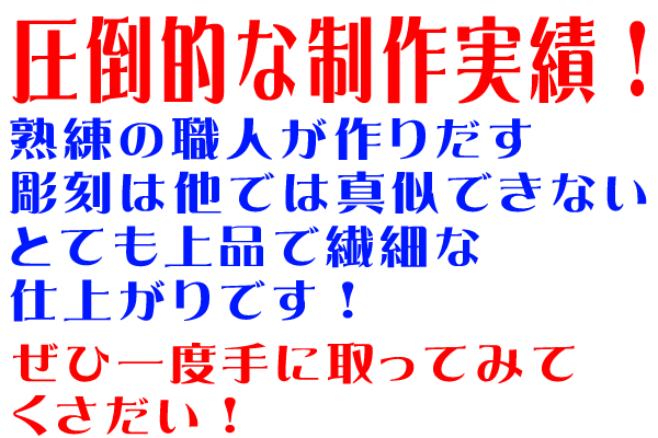 専門の職人が丁寧に一文字づつ彫刻していきますので、とてもきれいな仕上がりになります♪ |