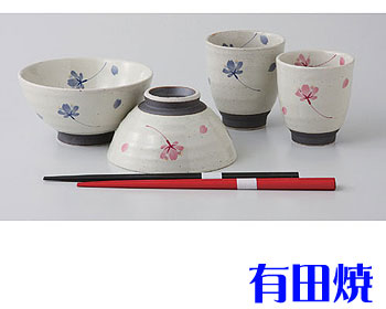 | 有田焼 桜の舞夫婦セット 夫婦茶碗+夫婦湯飲みのセット(箸付) |