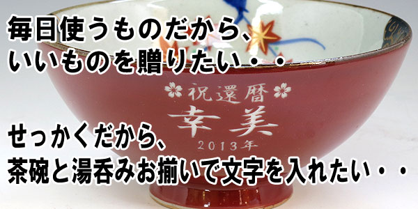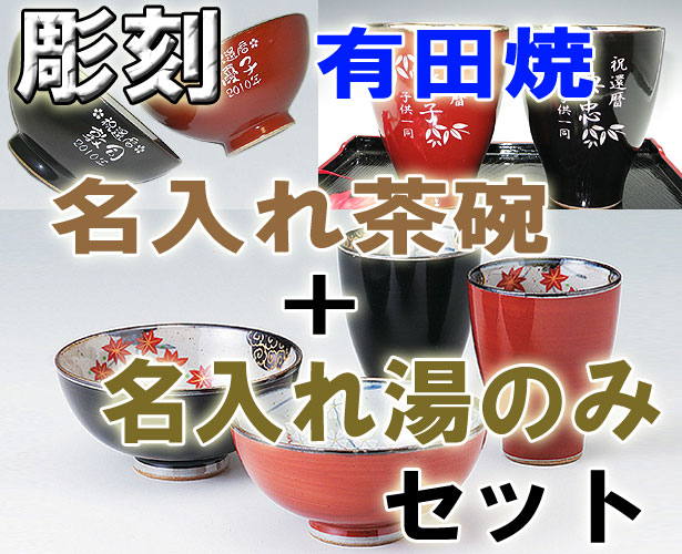 | 有田焼 彫刻 茶碗+湯呑み 春秋(赤) |