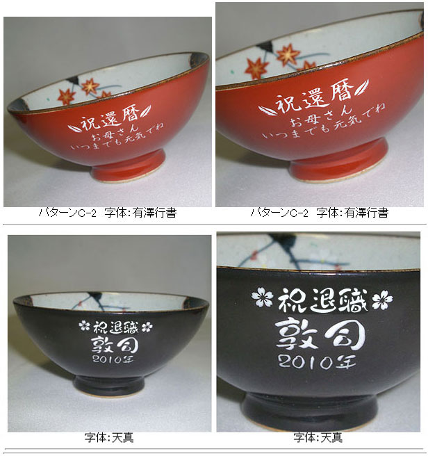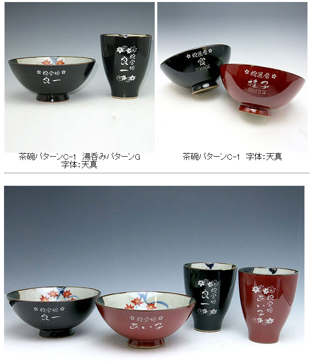 @茶碗と湯呑の文字入れパターンの中から、それぞれ1つを選び ボタンを
