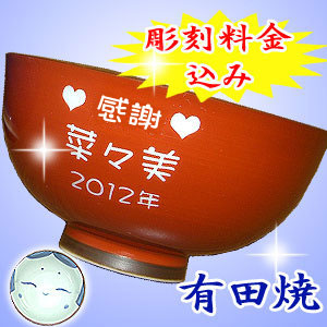 | 有田焼 彫刻 茶碗 おかめ(赤) |