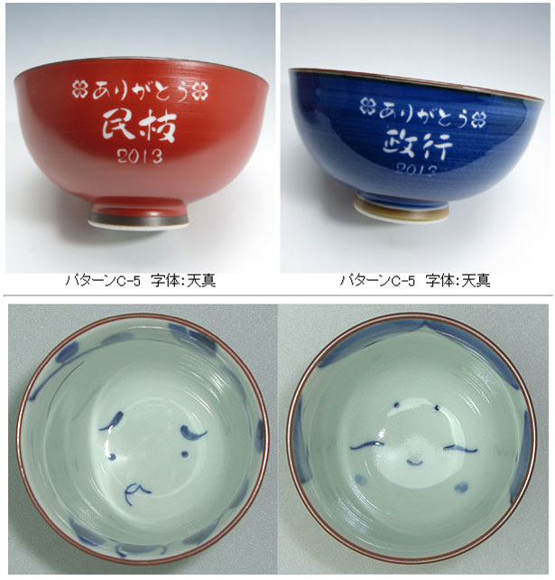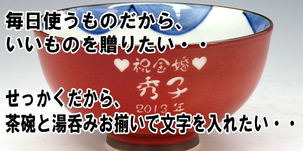 @茶碗と湯呑の文字入れパターンの中から、それぞれ1つを選び ボタンを