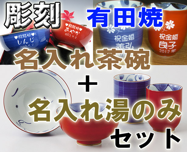 | 有田焼 彫刻 茶碗+湯呑み おかめ(赤) |