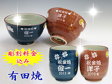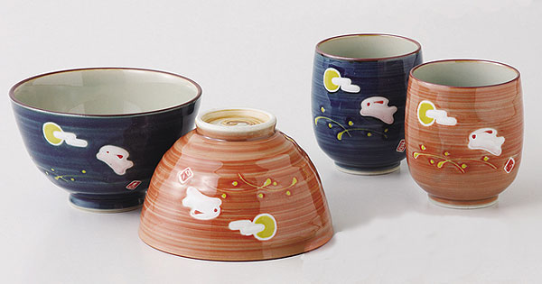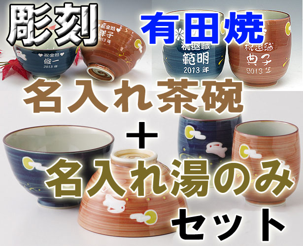 | 有田焼 彫刻 夫婦茶碗+夫婦湯呑み 兎斗屋 |