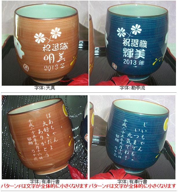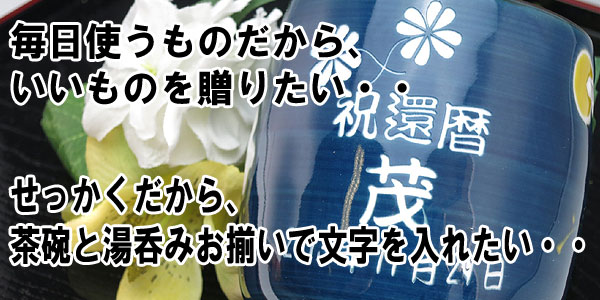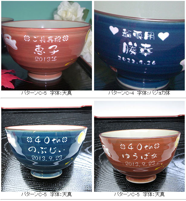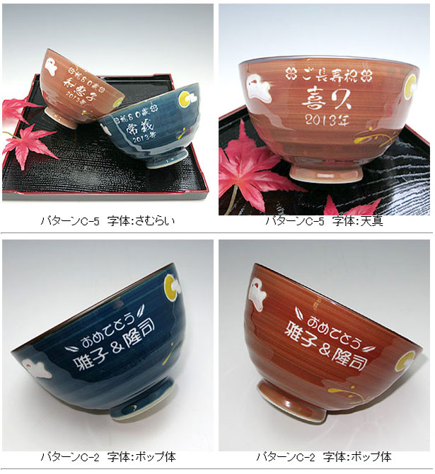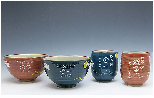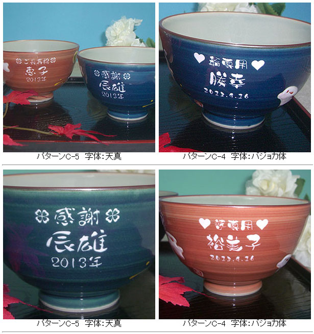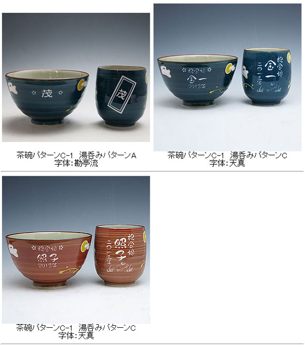 @茶碗と湯呑の文字入れパターンの中から、それぞれ1つを選び ボタンを