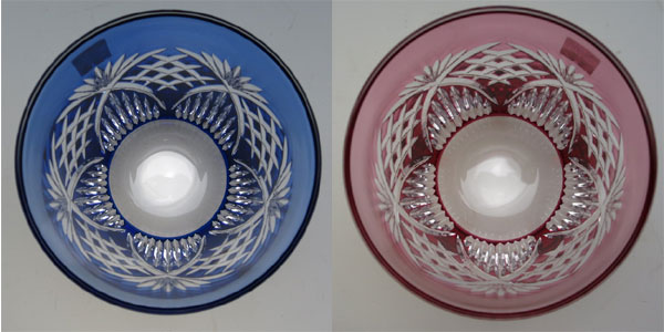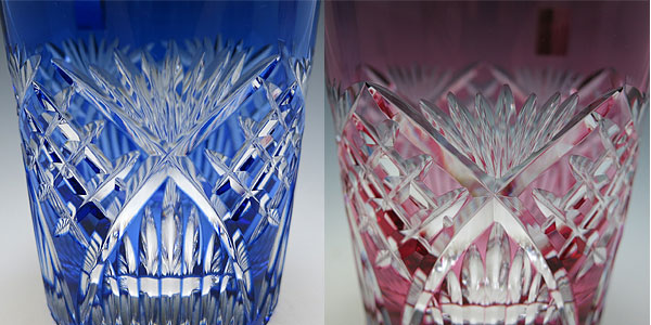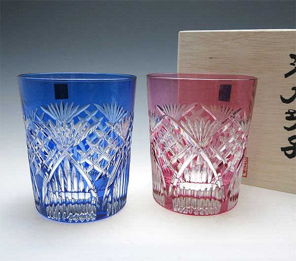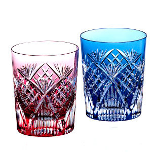 皇室御用達カガミクリスタルの作品です。赤と青のペアセット!伝統的な江戸切子でとてもキレイな逸品です☆