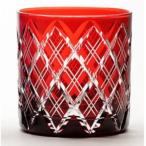 江戸切子 ミニオールド 矢来重文様 アカ 彩鳳(m-3041-r)