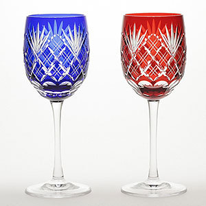 江戸切子 ワイングラス 剣矢来重文様 ペアセット 彩鳳(m-331-2)