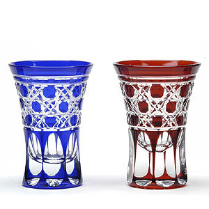 江戸切子 天開ぐい呑 八角篭目文様 ペアセット 彩鳳(m-47-2)