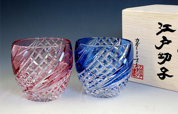 江戸切子 ペア懐石杯 魚子流し カガミクリスタル(#2591)