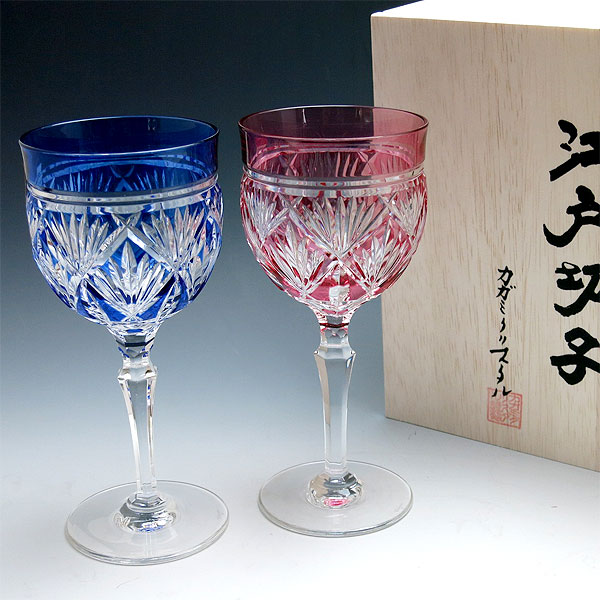 江戸切子 ペアワイングラス 笹っ葉 カガミクリスタル(#2620)