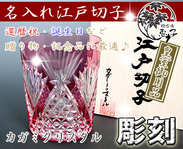 名入れ 江戸切子 ロックグラス 笹っ葉に麻の葉(赤) カガミクリスタル(t370-2669-cauori)