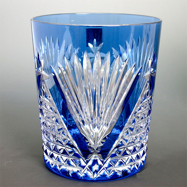 名入れ 江戸切子 ロックグラス 笹っ葉に麻の葉(青) カガミクリスタル(t370-2669-ccbori)