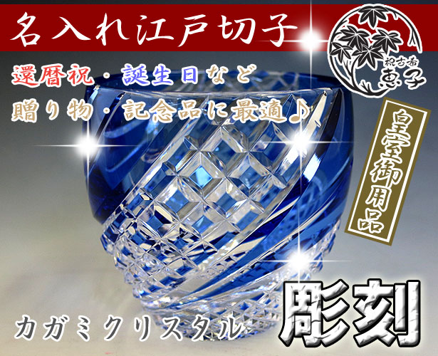 名入れ 江戸切子 懐石杯 魚子流し(青) カガミクリスタル(t535-2044-ccbori)