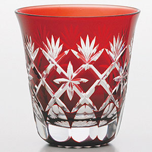江戸切子 ペア焼酎グラス 剣矢来 紅(赤) (tm-101)