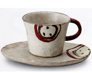 | 信楽焼のコーヒーカップです♪手作りのたわみがとても雰囲気のある作品です。取っ手の赤色がおしゃれです☆ |