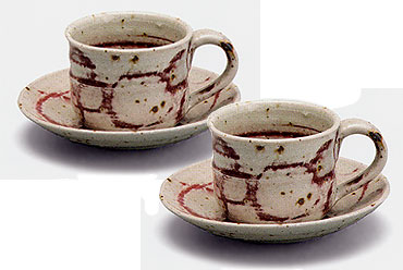 | 退職祝いにおススメ♪ 信楽焼 コーヒーカップ 水面(赤)ペアセット |
