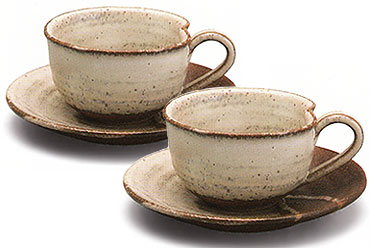 | 信楽焼 コーヒーカップ 白流ペアセット |