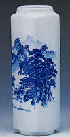 花瓶 角切花瓶 唐草山水