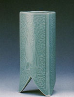 鳳花瓶 青磁彫鶴