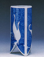 鳳花瓶 染付彫鶴