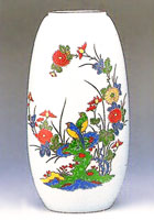 京型花瓶 丸絵花鳥図