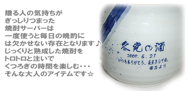 大人気の有田焼♪その中でも特に名入れ(文字入れ)で人気の高い焼酎サーバーを集めました。しかもお値段リーズナブル☆