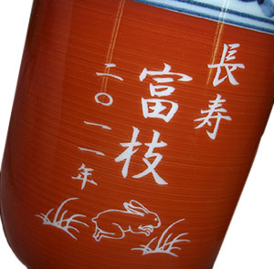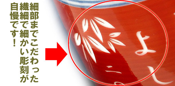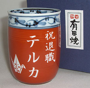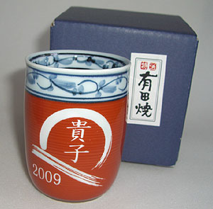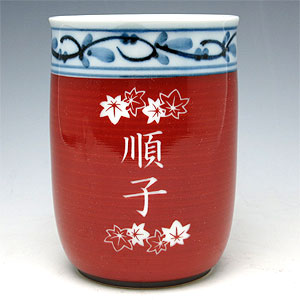 | 退職祝いにおススメ♪ 有田焼 湯呑(小・赤) 菊池紋 (彫刻料金込) |