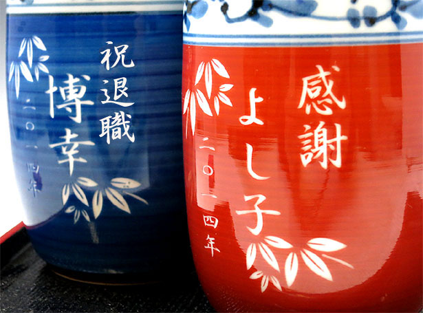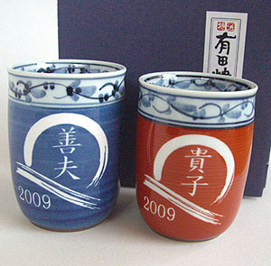 | 退職祝いにおススメ♪ 有田焼 湯呑 菊池紋 夫婦セット(彫刻料金込) |