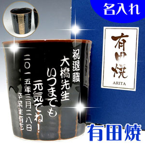 | 退職祝いにおススメ♪有田焼 湯呑 金ライン (彫刻料金込) |