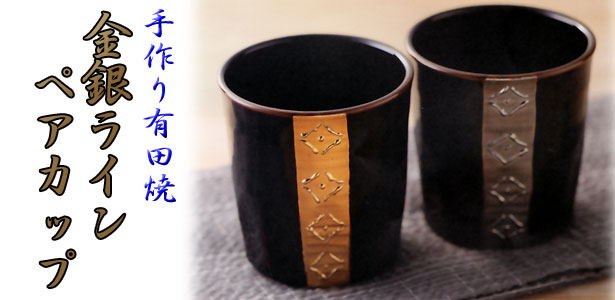 | 退職祝いにおススメ♪有田焼 湯呑 金銀ライン 夫婦セット(彫刻料金込) |