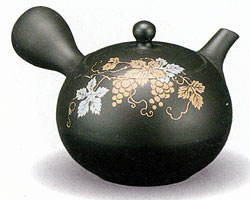 急須と言えば常滑焼。昭崩窯の作品です。小ぶりの急須がかわいらしく、ぶどうの模様が見た目にもすばらしい逸品です☆※約 1人〜2人用です。