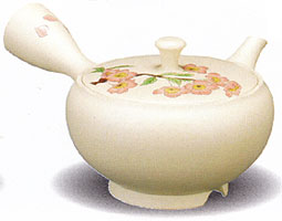 急須と言えば常滑焼。柏龍陶苑の作品です。淡い白地にピンクの花が映え、見た目にも素晴らしい作品です☆癒しの一服をどうぞ♪