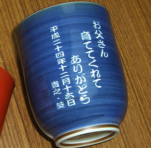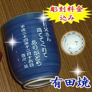 | 退職祝いにおススメ♪ 有田焼 湯呑(青) ひょっとこ (彫刻料金込) |