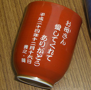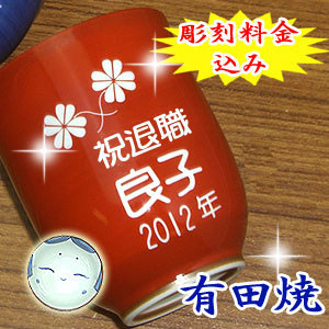 | 退職祝いにおススメ♪ 有田焼 湯呑(赤) おかめ (彫刻料金込) |