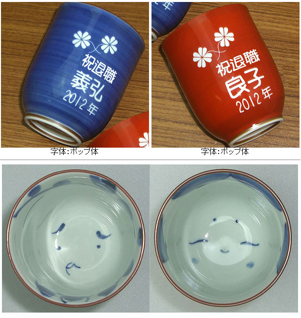 | 退職祝いにおススメ♪ 有田焼 湯呑 おかめひょっとこ 夫婦セット(彫刻料金込) |