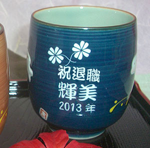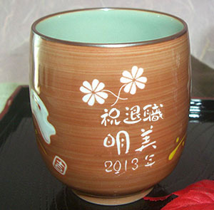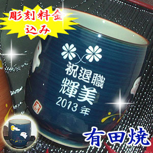 | 退職祝いにおススメ♪ 有田焼 湯呑(青) 兎斗屋 (彫刻料金込) |