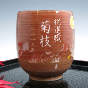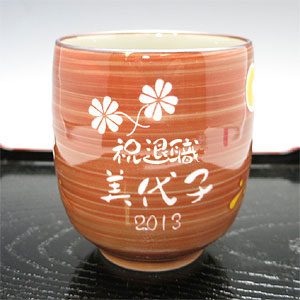 | 退職祝いにおススメ♪ 有田焼 湯呑(赤) 兎斗屋 (彫刻料金込) |