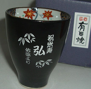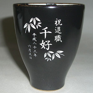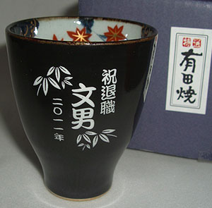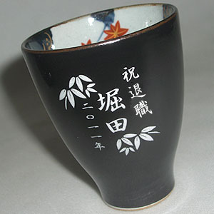 | 退職祝いにおススメ♪ 有田焼 湯呑(黒) 春秋 (彫刻料金込) |