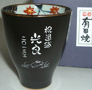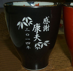 細かい彫刻が人気の秘密!高級有田焼の湯呑みにお好きな文字をお入れします☆ジュースやお酒も楽しめる♪
