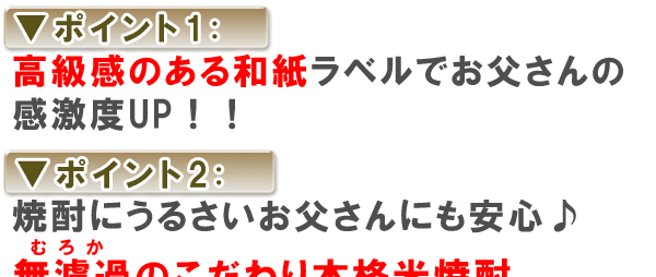 父の名前を入れてもらいました。贈った時には自分の名前の焼酎があるのかとビックリしていました!