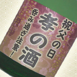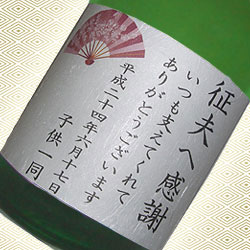 | 日本酒が大好きな父親に贈りました。日本酒に名入れしてくれるところはそんなに多くないので助かりました。父親からお礼の電話がありとても喜んでいました。ありがとうございました。 |