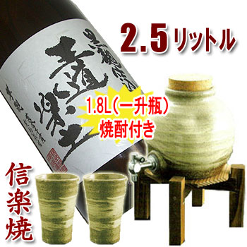| 灰釉刷毛目2.5L(焼杉木台付)・専用カップ2個付き・本格芋焼酎王道楽土1.8L |