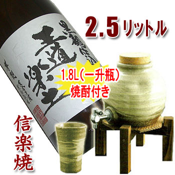 | 灰釉刷毛目2.5L(焼杉木台付)・本格芋焼酎王道楽土1.8L |