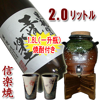 | 織部2.0L(焼杉木台付)・専用カップ付き・本格芋焼酎王道楽土1.8L |