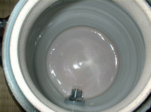 焼酎サーバーの中です。信楽焼の土がぎっし